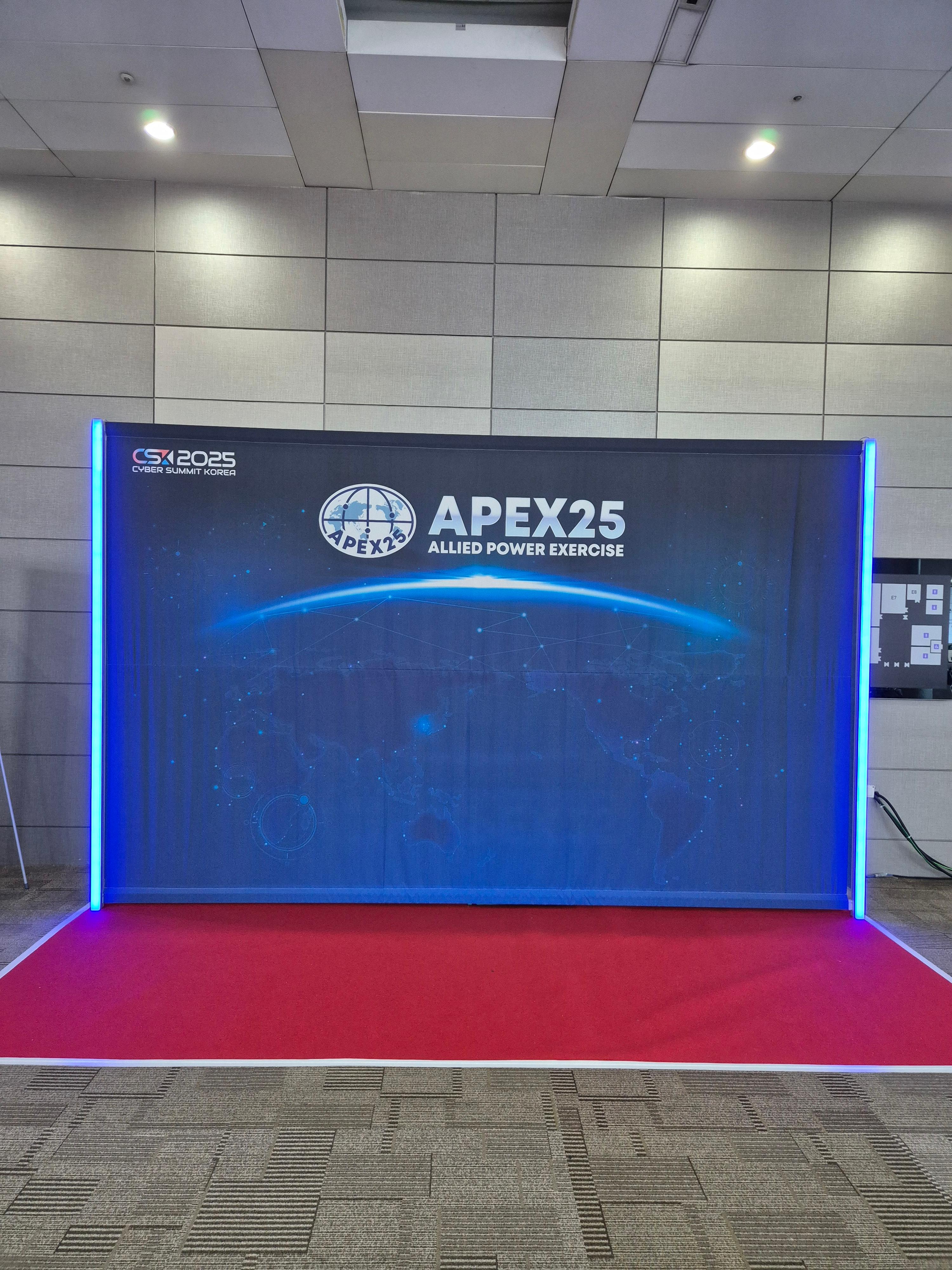 APEX란 2024년부터 시작된 한국주도의 국제사이버훈련으로 NATO의 Locked Shields 훈련처럼 전세계 사이버 안보 연대강화를 위해 각종 자산을 공격하는 레드팀, 레드팀과 블루팀의 인프라를 구축해주는 그린팀, 레드팀의 공격을 방어하고, 취약한 자산의 보안을 강화하는 블루팀으로 나뉘어 가상의 국가 간 분쟁 상황을 가정한 사이버 전쟁 시나리오를 바탕으로 실시하는 훈련이다.